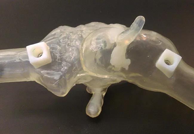 His team’s first step was to develop a model to test whether the pressure gradients obtained by echocardiography — the gold standard for diagnosing aortic stenosis — could be replicated by a 3-D-printed version of a stenotic aortic valve.
