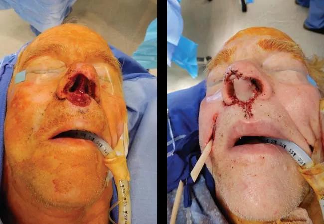 He continues, “Patients are often left with ablative defects involving significant cutaneous, nasal lining and structural loss. From a surgeon’s perspective, the nature of these resections have historically posed significant reconstructive challenges. This area of the nose has unique multilaminar and three-dimensional functional architecture. In addition, the paucity of nearby skin, perichondrium, periosteum and mucosa, when septal resection is also performed, magnifies the difficulty of achieving a reasonable functional and aesthetic outcome.