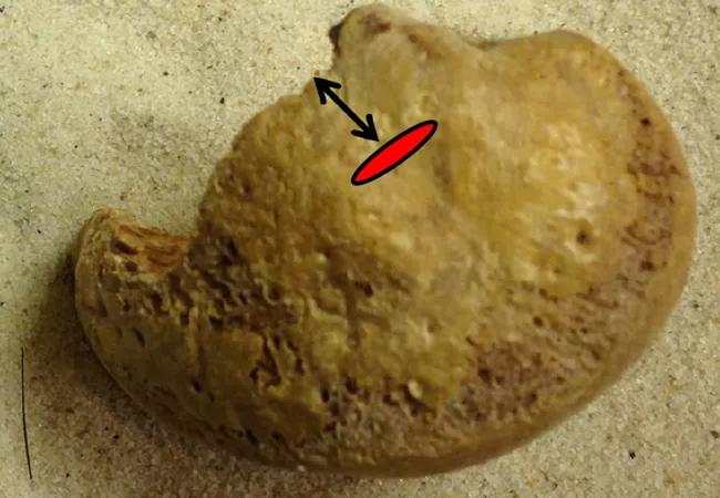 Figure 1: Medial patellofemoral ligament femoral attachment (red oval) seen distal to the distal femoral physis.