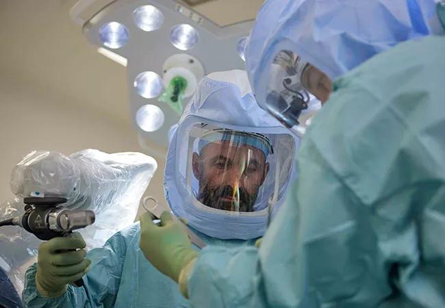 Above photo: Mr Gikas performs joint replacement surgery at Cleveland Clinic London.