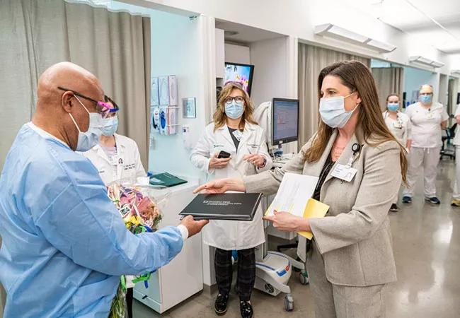 Recognizing caregivers who exhibit our values (Safety and Quality, Empathy, Inclusion, Integrity, Teamwork, and Innovation) in their daily work strengthens desired behaviors while creating greater alignment across the health system. Our Caregiver Celebrations recognition platform empowers caregivers to acknowledge each other for outstanding behavior and performance, in support of our values. For example, the Appreciation Award is a simple, non-monetary recognition that supports the values and patient experience.