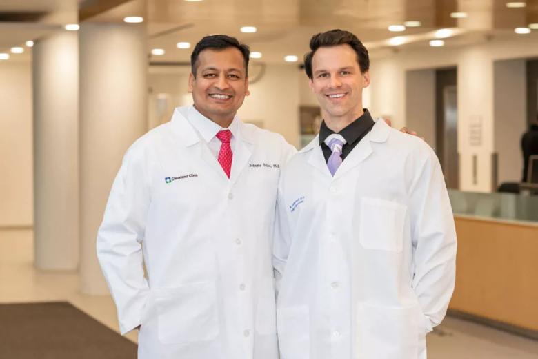 Dr. Debasis Sahoo, left, and Dr. Matthew Kampert at Cleveland Clinic South Pointe Hospital. (Photo by Don Gerda taken prior to March 1, 2020)
