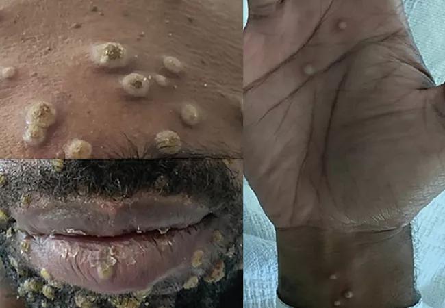 However, in the current outbreak, patients may present with a less severe prodrome and increased prevalence of vesicular lesions in the genital and perineal regions. In addition, symptoms may include anorectal pain or pharyngitis. The differential diagnosis of pustular lesions consists of several infectious processes, including mpox, herpes simplex virus, molluscum contagiosum, cutaneous cryptococcosis, cutaneous cytomegalovirus, syphilis, and lymphogranuloma venereum.4,5