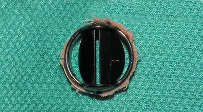 Approximately one month later, she successfully underwent fourth time redo median sternotomy with re-replacement of her aortic valve as well as coronary artery bypass grafting for one-vessel coronary artery disease. Her mechanical aortic prosthesis was found to have pannus formation both above and below the valve, confirming the mechanism of her intermittent obstruction.