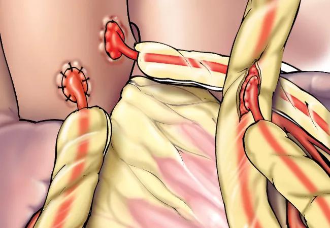 In addition to the left ITA, the right ITA is also often used in patients age 65 or younger — and also in older but otherwise relatively healthy patients when more than one graft is needed, says Dr. Tong. Long-term studies from Cleveland Clinic found that bilateral ITA grafts further decrease the long-term risks of death and reoperation compared with single ITA grafts. Use of both ITAs as bypass grafts is more complex and is not appropriate for some patients.