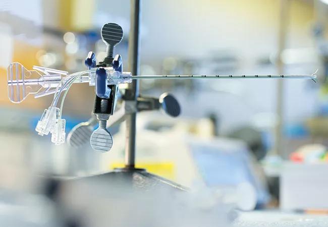 The Cleveland Multiport Catheter (CMC), a novel four-port device for convection-enhanced delivery, successfully conveys high volumes of chemotherapy to enhancing and nonenhancing regions of recurrent high-grade gliomas. So conclude Cleveland Clinic researchers who presented results from a clinical trial in the first 12 patients treated with the device at the 2017 annual meeting of the Society for Neuro-Oncology in San Francisco.