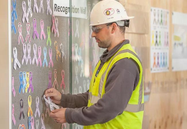 “We really wanted to emphasize that this is a cancer facility, and cancer touches everybody, whether it’s friends or family,” Doren says. “Cancer has touched many of us many times over, so we asked them to think about that each day, and to put care into doing things right the first time.” During construction, workers were encouraged to honor friends and family affected by cancer by placing ribbons on a Recognition Wall in the building. While the wall will be removed, each ribbon will be incorporated into artwork displayed in the new building. “The heartbeat of the building, the lifeline of the building has already begun with the workers,” adds Doren. “It started with the men and women and the passion they have for this building.”