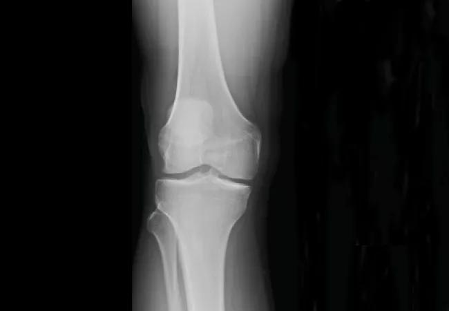 We obtained posteroanterior radiographs of the knee using the metatarsophalangeal (MTP) joint positioning technique, in which the knees are slightly bent and the MTP joint is even with the front of the X-ray cassette. We employed the semi-automated electronic measurement technique developed by Jeffrey Duryea, PhD, at Brigham and Women’s Hospital in Boston. This method traces the outline of the femoral condyle and the tibial plateau and measures the joint space width across the entire tibial plateau. We used the point at 75 percent from the medial edge to the lateral edge of the tibia to measure the lateral compartment joint space width, as this location has been most sensitive to change in prior studies. This produces measurements that are accurate to 0.3 mm.