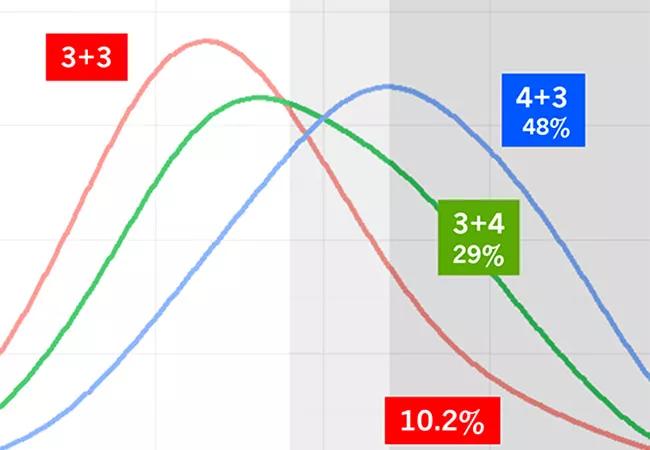 Distribution of Decipher® scores by pathological Gleason score category in prospective and retrospective cohorts. Eighty percent of 3+3 Gleason tumors have low risk of metastasis; 13 percent have intermediate risk, and 7 percent have a high risk of metastasis, as measured by Decipher, which assesses tumors for cell-cycle proliferation, adhesion and motility, immune modulation and androgen signaling.