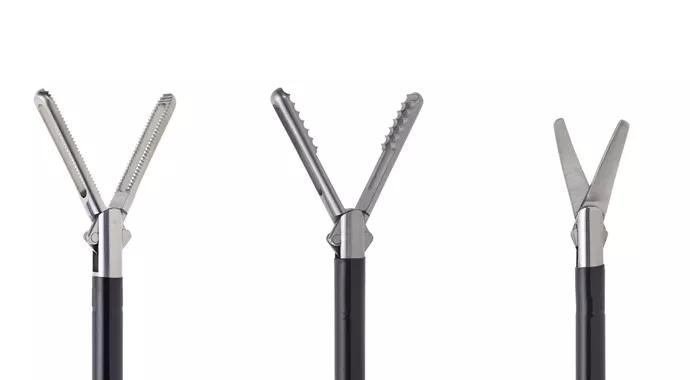 Instead of using trocars, the shaft of the instrument is entered directly through the abdominal wall. “What’s unique about these is that the shafts can be exchanged outside of the body so that robust standard-size laparoscopic instruments can be attached to them. Basically, the shaft is passed through an adjacent trocar, so some trocars have to be used,” he says.