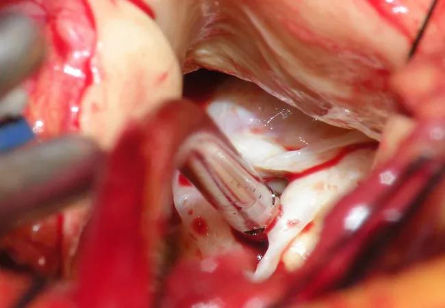 Figure 2. A typical view of the BAV through the incision in a minithoracotomy.