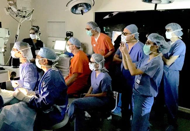 In addition to the ergonomic advantage for surgeons, the big-screen projection also engages the entire surgical team. Typically in the operating room, the various staff — nurse anesthetist, anesthesiologist, scrub nurse and circulator nurse — are all in the OR during the procedure, but they’re concentrated on other things and not necessarily paying attention to the surgery, Dr. Singh explains.