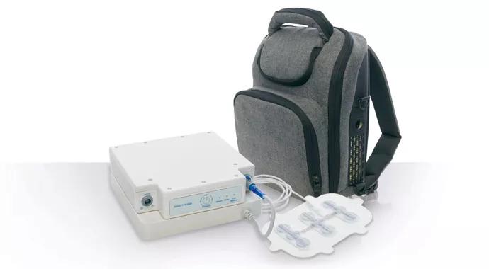 The NovoTTF-100A System (Novocure; Haifa, Israel) is a portable battery-operated device that produces TTFields within the human body using surface electrodes (transducer arrays).