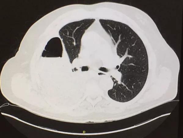 At the time of that admission, he reported no fever, chills, night sweats, cough, or history of heart or lung disease. His vital signs were normal, and physical examination had revealed no apparent respiratory distress, no jugular venous distention, normal heart sounds, and no pedal edema; however, decreased air entry was noted in the right lung base. Initial serum levels of troponin and Nterminal pro-B-type natriuretic peptide were normal.