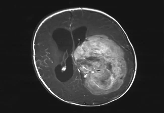 Figure 1. T1-weighted MRI with contrast showing a choroid plexus carcinoma.