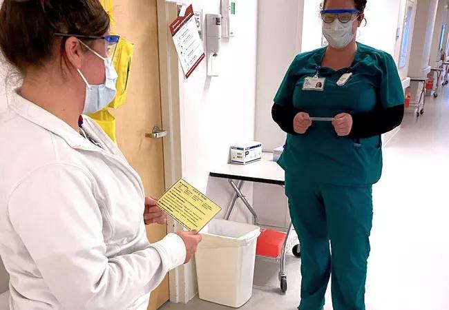 After reviewing the literature on caregiver communication and patient falls, a group of frontline nurses and PCNAs created the S.A.F.E. script. “We wanted a visual reminder that was user-friendly and easily accessible to nurses and PCNAs,” says Susan Moran, MSN, RN, Nurse Manager of the rapid observation unit and a member of the team that worked on the project.