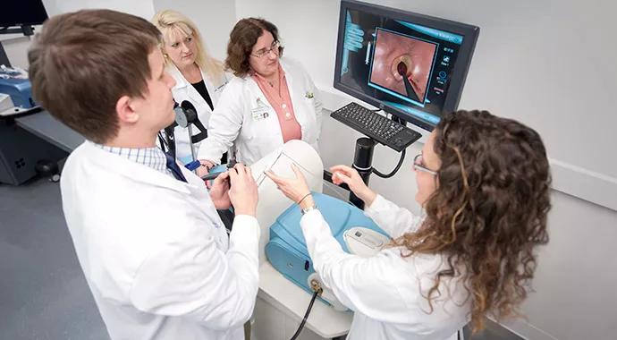 The endoscopy simulator is introduced to fellows during the early stages of training. Its simulated environment permits learners to acquire knowledge and build a framework of basic skills through repetitive practice of relevant tasks with the aim of better preparing novices for patient-based training. Trainees are able to rehearse psychomotor and perceptual skills in a risk-free environment so that they attain some degree of proficiency before performing endoscopy in the clinical setting.
