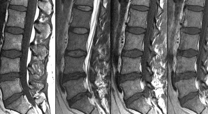 Figure. The case vignette (with associated radiographs and MRIs) that was presented as Scenario 2 in the survey. Reprinted from reference 1 (Mroz et al) with permission from Elsevier.