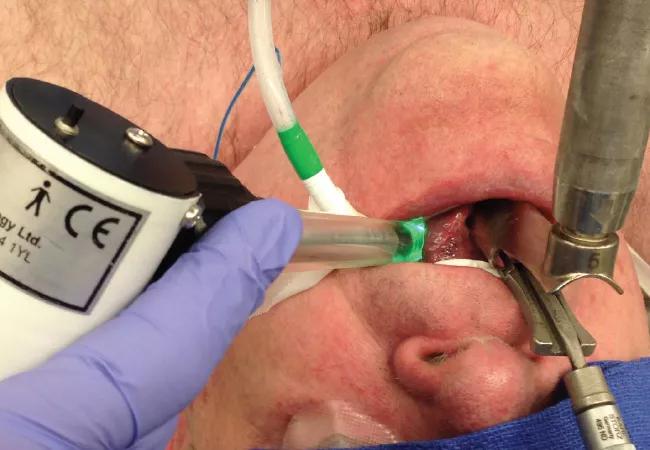 Perfusion was assessed in a series of 20-second video recordings to examine the sublingual microcirculation. Recordings were made prior to scope insertion, immediately following suspension, at regular intervals throughout the procedure (for patients who were undergoing longer surgeries) and finally when the scope was removed (Figure 1). The duration of surgery ranged from 15 to 80 minutes. Following surgery, patients completed a questionnaire designed to determine the extent of postoperative complications, if any.