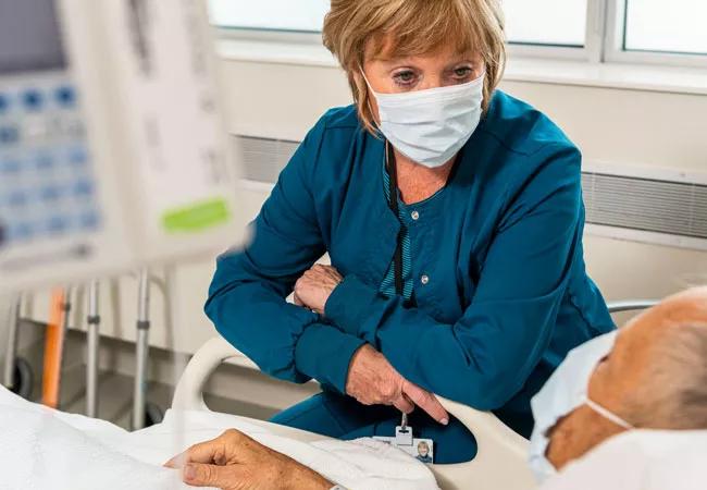 O’Toole retired seven years ago from full-time work as a nurse manager in surgical recovery at Cleveland Clinic Hillcrest Hospital. Nearly a year into the pandemic, in January 2021, she felt the urge to help patients and caregivers in whatever way she could. She returned to Hillcrest Hospital, where she works about 10 hours a week supporting patients by listening to their concerns, helping them understand medical conditions and care plans, and communicating with their families. One of the most satisfying aspects of the work, O’Toole says, is helping older adult patients who may be confused about why they’re in the hospital.