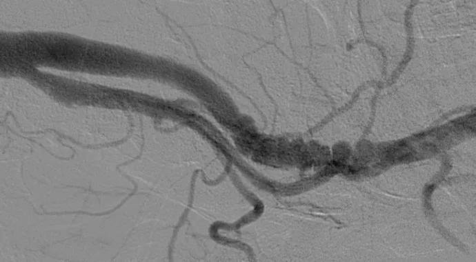FMD, a nonatherosclerotic arterial disease affecting medium-size vessels, most often involves the renal, carotid and vertebral arteries. FMD may progress to arterial stenosis, beading, aneurysm and, in some cases, dissection.