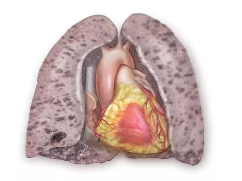 Figure 1. Illustration of fibrotic lungs with concomitant coronary artery disease.
